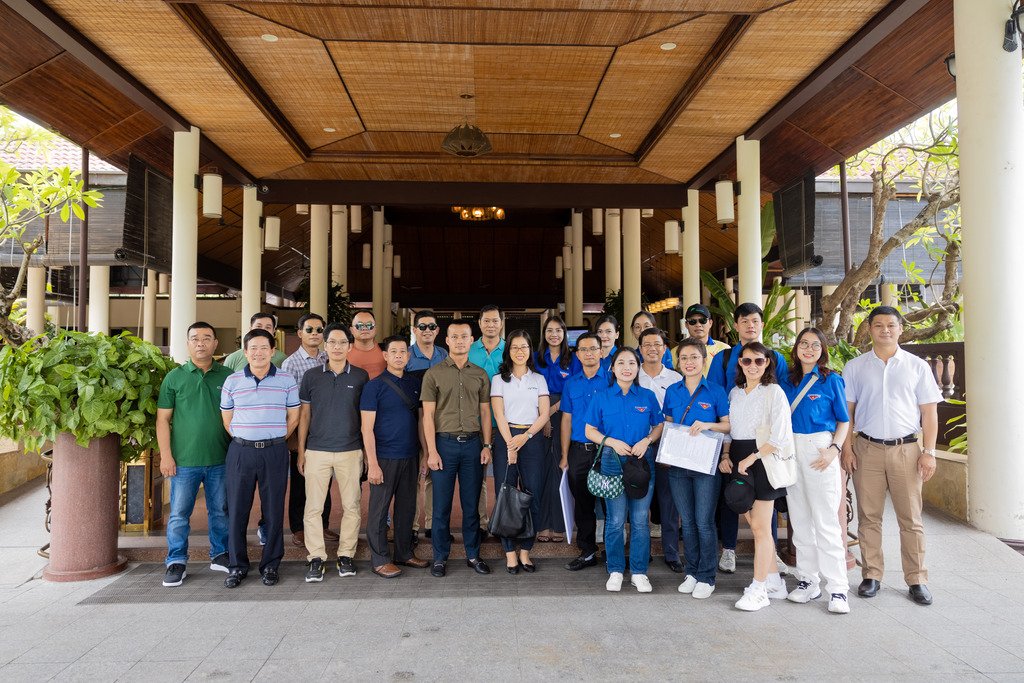 Đoàn từ thiện chụp ảnh lưu niệm tại chương trình An sinh xã hội.