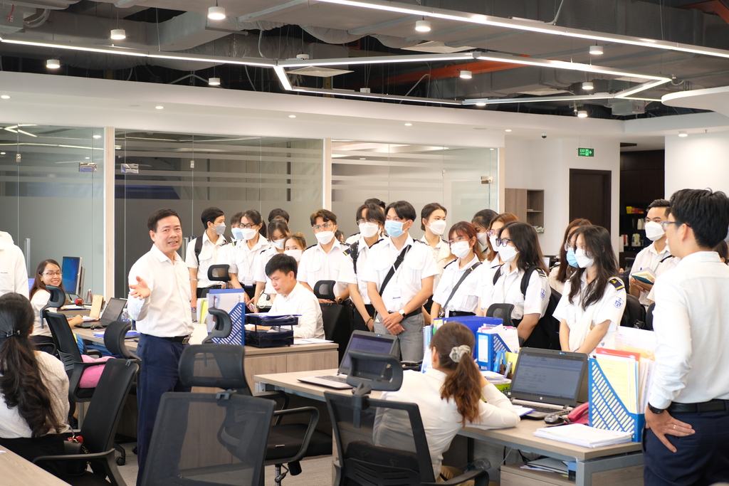 Trong buổi tham quan, các bạn sinh viên Viện Hàng Hải đã được giới thiệu về quá trình hình thành và phát triển của Công ty. Ngoài ra, sinh viên còn được đại diện công ty chia sẻ về các kỹ năng; vị trí công việc; các tiêu chí tuyển dụng cần có ở ứng viên và những cơ hội việc làm tại công ty sau khi tốt nghiệp.