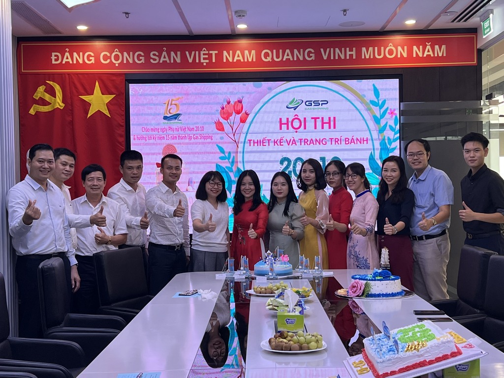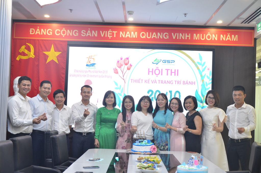 Để kỷ niệm ngày Phụ nữ Việt Nam thật đáng nhớ cũng như hướng về ngày kỷ niệm 15 năm thành lập của Gas Shipping thêm phần đặc biệt và ý nghĩa, Công đoàn Công ty GSP đã tổ chức hội thi “ Thiết kế và trang trí bánh” với chủ đề “Chào mừng ngày 20/10 và hướng tới kỷ niệm 15 năm thành lập công ty Gas Shipping”.