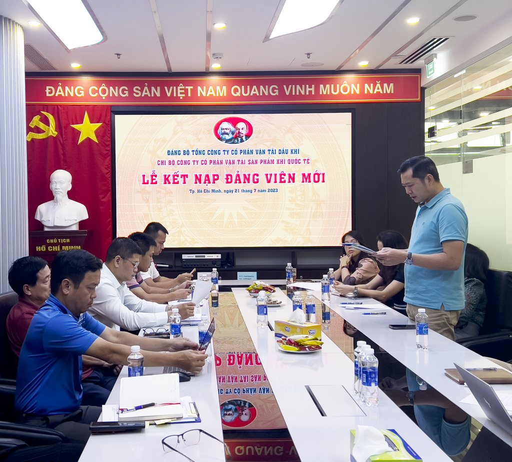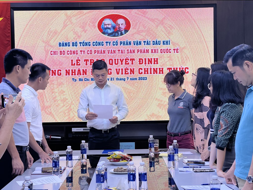 Sáng ngày 21/7/2023, Chi bộ Công ty Cổ phần Vận tải Sản phẩm Khí Quốc tế thuộc Đảng Bộ Tổng Công ty Cổ phần Vận tải Dầu khí đã tiến hành sinh hoạt định kỳ và tổ chức Lễ Kết nạp Đảng viên mới cho quần chúng ưu tú Nguyễn Huy Thắng và trao Quyết định công nhận Đảng viên chính thức cho Đảng viên dự bị Nguyễn Thị Dung San.